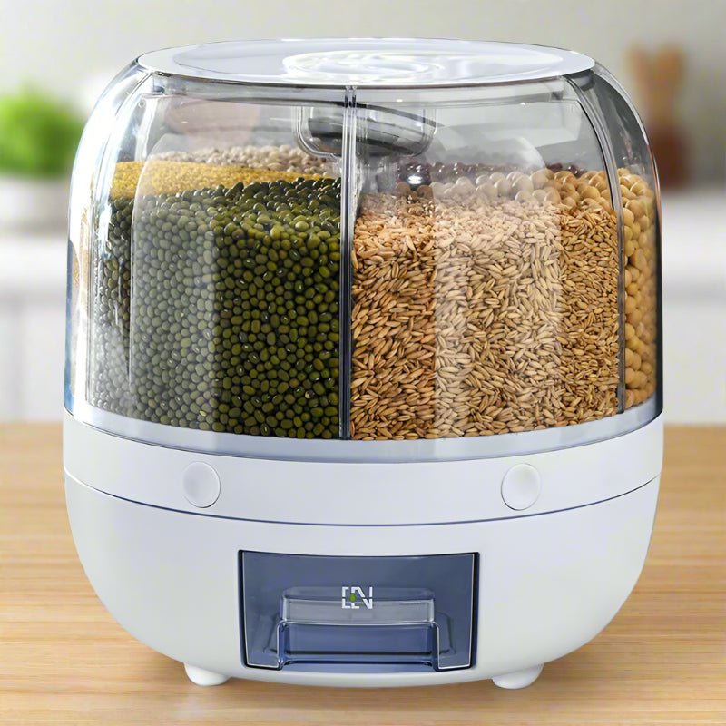 Découvrez la solution parfaite pour une cuisine organisée et des aliments toujours frais avec notre boßte de conservation alimentaire 6 compartiments. Elle transforme radicalement votre maniÚre de stocker les denrées sÚches du quotidien. Fini le désordre dans vos placards et le gaspillage alimentaire grùce à ce distributeur alimentaire rotatif innovant et pratique.