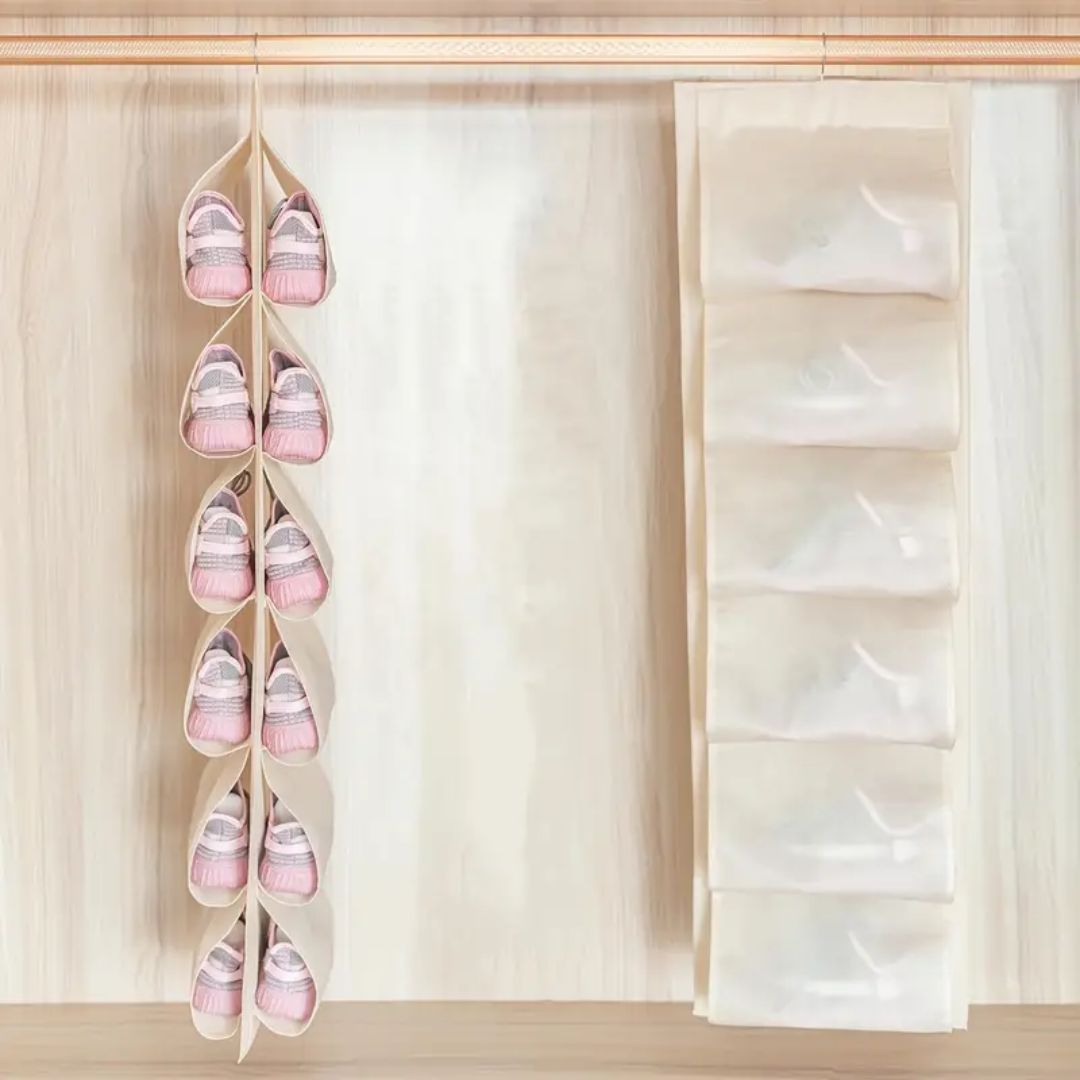 GAIN DE PLACE ASSURÉ AVEC CETTE ÉTAGÈRE À CHAUSSURES SUSPENDUE