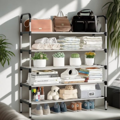 Cette étagère chaussure à 5 niveaux est la solution idéale pour ceux qui cherchent à maximiser l'espace de rangement tout en gardant leurs chaussures organisées et facilement accessibles.